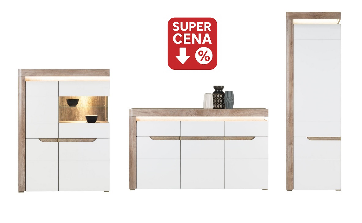 Meblościanka Irma Dąb + Biały PołyskMeblościanka Irma Dąb + Biały PołyskCena: 4017.00 3569.00 zł